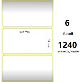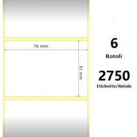 White 76x51mm,1240 Et/Rotolo Z-4000D, 3x2x1 Core, 6 Rolls